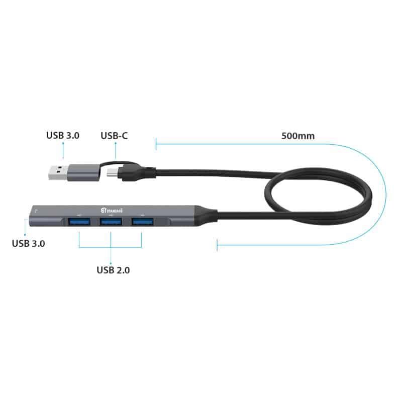 | Converting | (USB-C+USB 3.0) to (USB3.0*1Port+USB2.0*3Port) |
