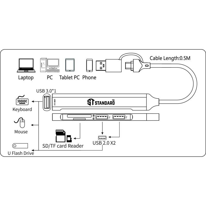 | Model | HUB USB-C+USB3.0 Card Reader with (5in2) ST-UCA9705 |