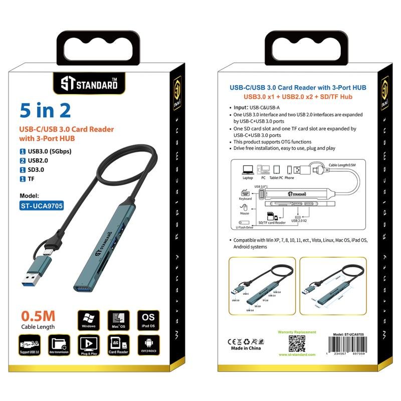 | الموديل | HUB USB-C+USB3.0 Card Reader with (5in2) ST-UCA9705 |